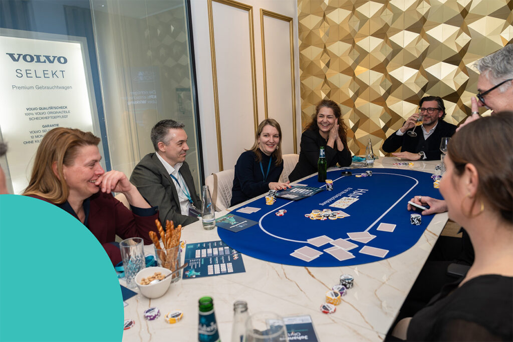 Lernen Sie Ihre Mitstreiter auf völlig neue Art und Weise kennen, tauschen Sie sich nachhaltig aus und lernen Sie spielerisch welche Parallelen Pokern und Businessituationen haben.