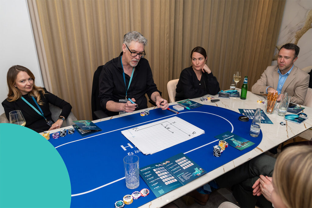 Gemeinsam mit Claudia Chinello und ihrer PokerAcademy sowie mit Mike König und seinem Team der Hapek führen wir den Game Plan durch. Darüber hinaus gestalten wir zusammen nicht nur unsere eigenen Business Poker Abende sondern bieten ebenso die Workshops, Trainings und Teambuilding Events für unsere Kunden an.